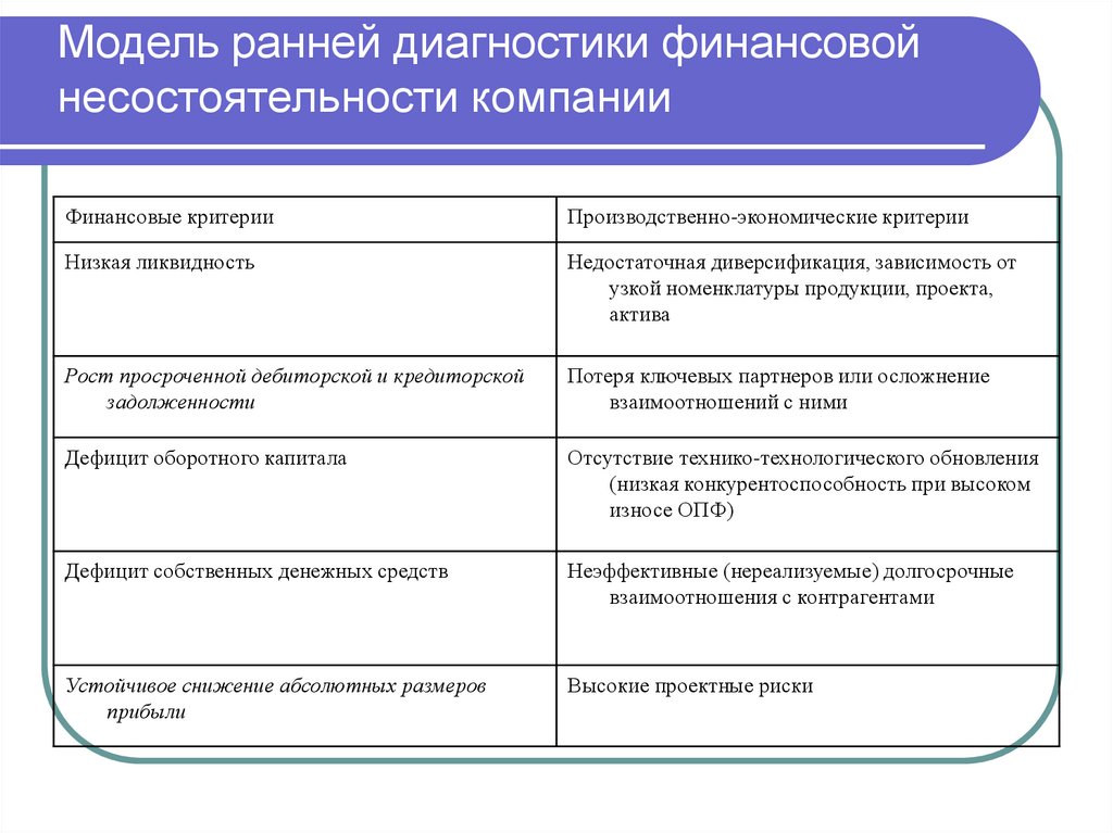 Ранняя диагностика несостоятельностикомпании