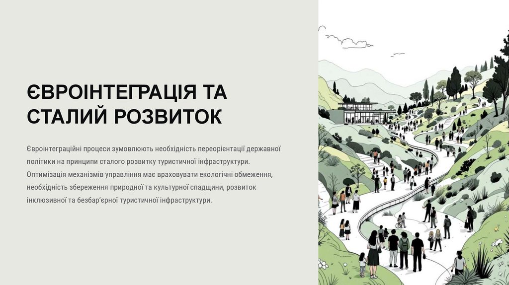 політики на принципи сталого розвитку туристичної інфраструктури.
