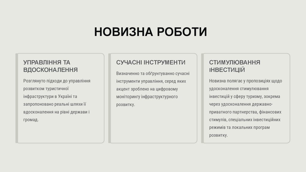 Об’єктом дослідження є система державного управління розвитком туристичної інфраструктури в Україні, яка охоплює взаємодію