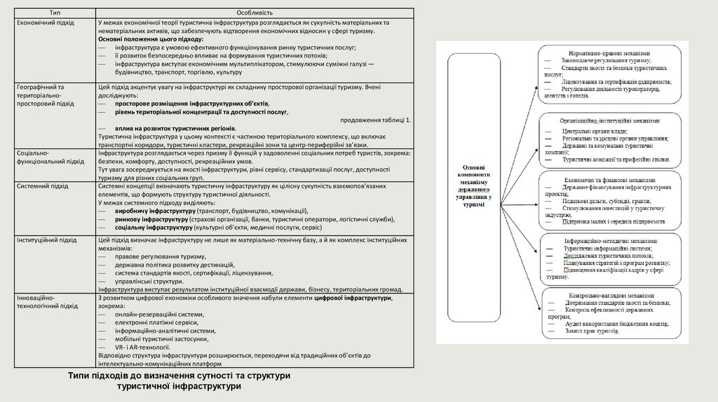 туристичної інфраструктури, а також процеси їх удосконалення й адаптації до сучасних умов соціально-економічного розвитку.