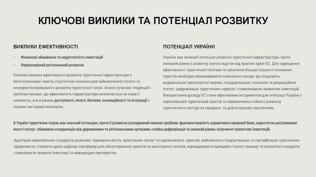 визначити ключові виклики ефективності розвитку туристичної інфраструктури;