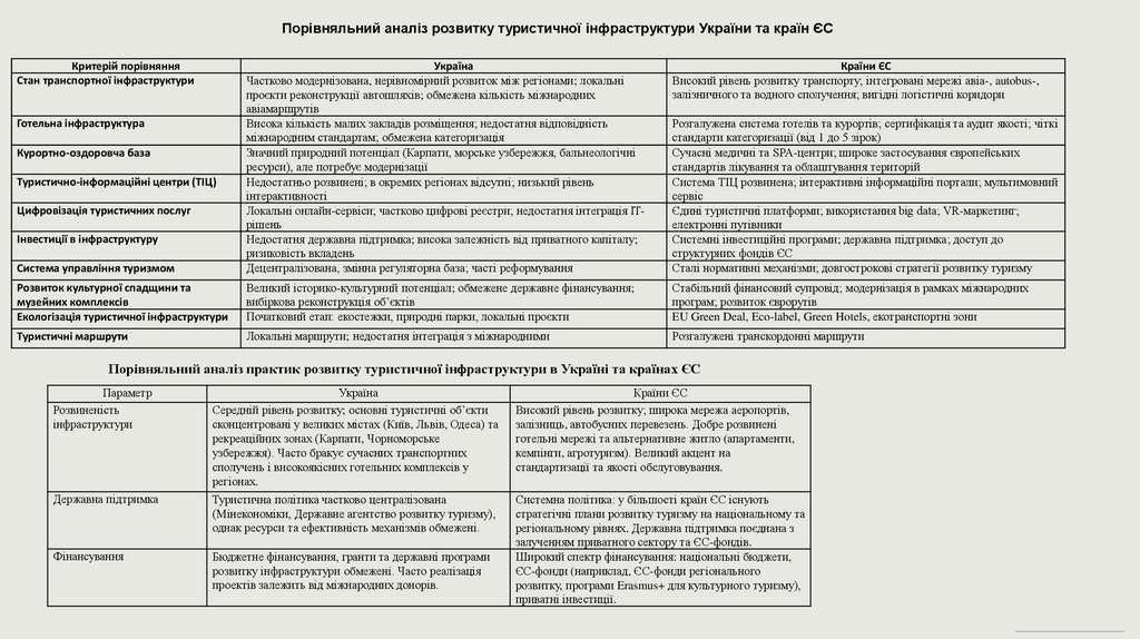 Порівняльний аналіз практик розвитку туристичної інфраструктури в Україні та країнах ЄС