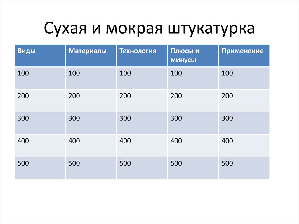Викторина «Своя игра»Тема: Сухая и мокрая штукатурка