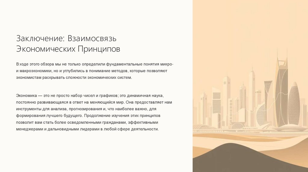 В ходе этого обзора мы не только определили фундаментальные понятия микрои макроэкономики, но и углубились в понимание методов, которые позволяют