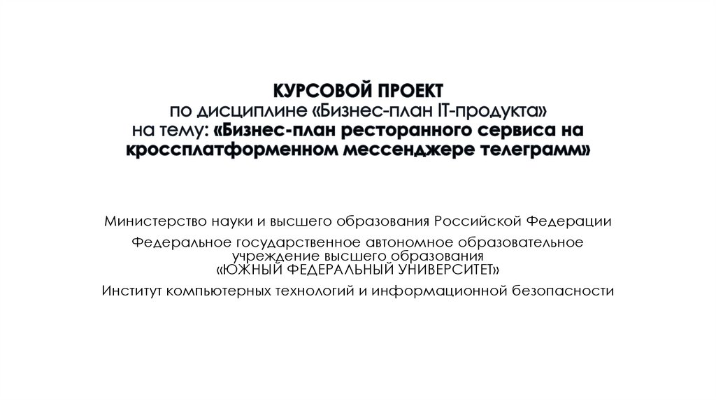 1. КУРСОВОЙ ПРОЕКТ по дисциплине «Бизнес-план IT-продукта» на тему: «Бизнес-план ресторанного сервиса на кроссплатформенном