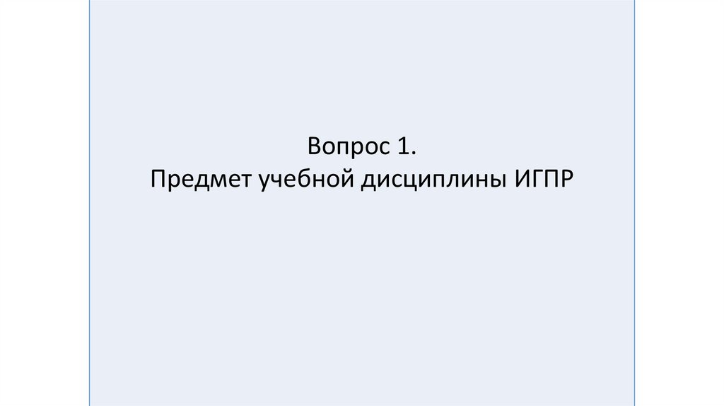 Вопрос 1.Предмет учебной дисциплины ИГПР