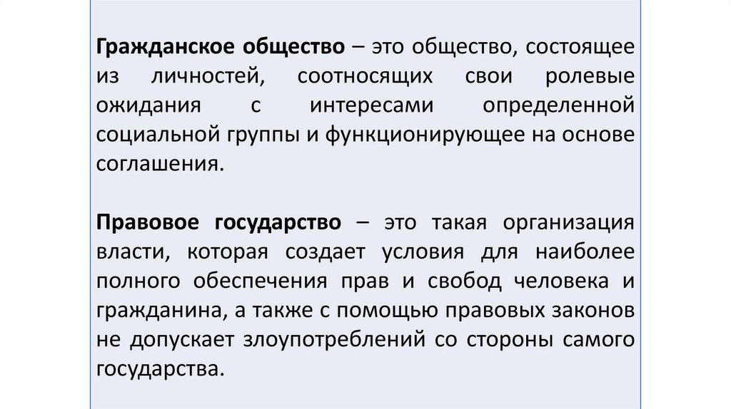 Гражданское общество – это общество, состоящееиз личностей, соотносящих свои ролевые
