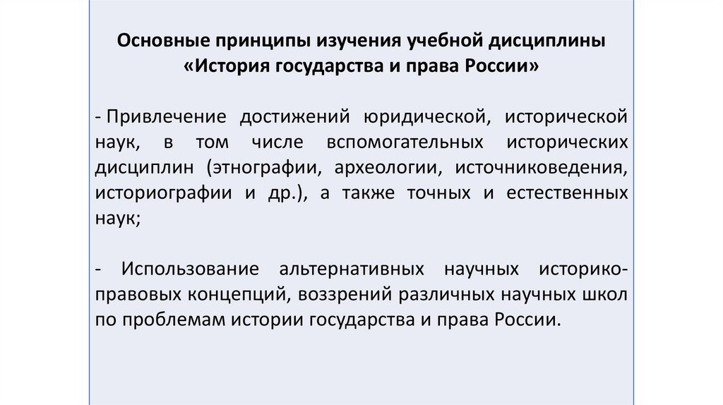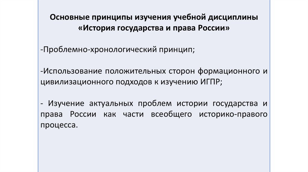Основные принципы изучения учебной дисциплины«История государства и права России»