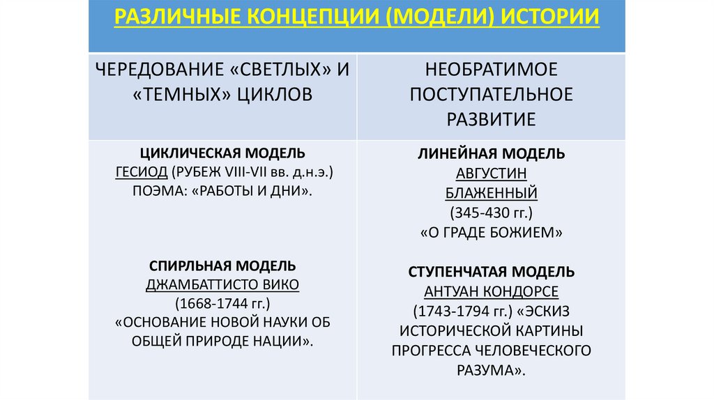 РАЗЛИЧНЫЕ КОНЦЕПЦИИ (МОДЕЛИ) ИСТОРИИЧЕРЕДОВАНИЕ «СВЕТЛЫХ» И