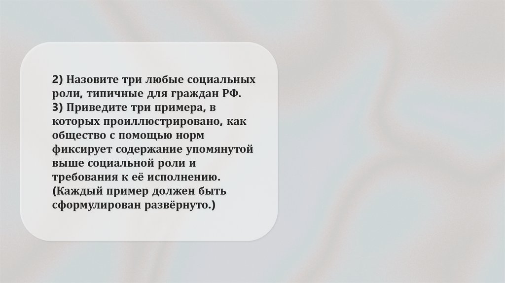 2) Назовите три любые социальныхроли, типичные для граждан РФ.