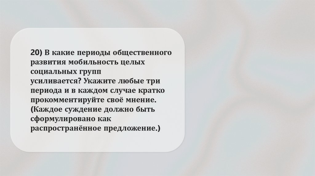 20) В какие периоды общественногоразвития мобильность целых