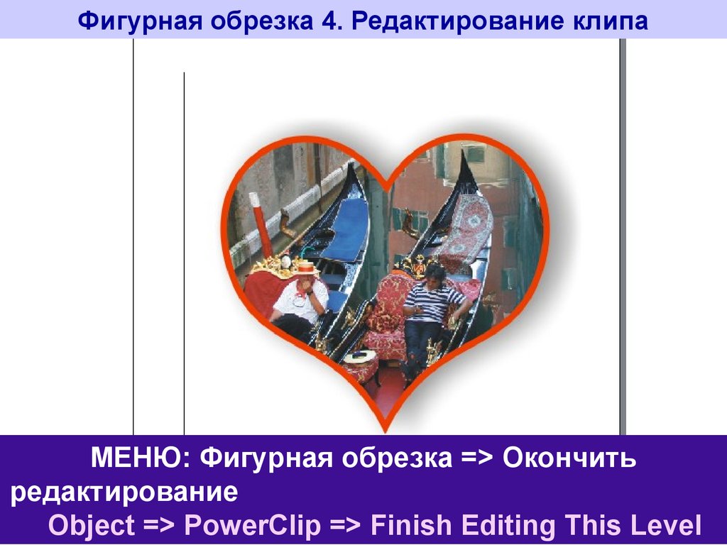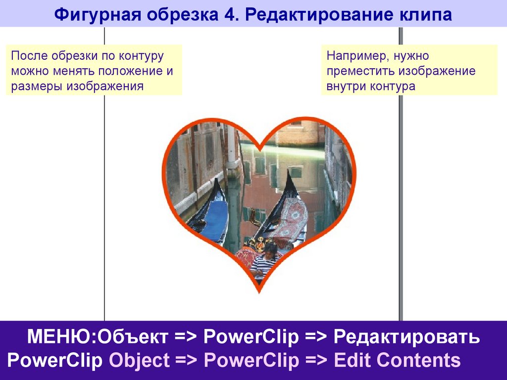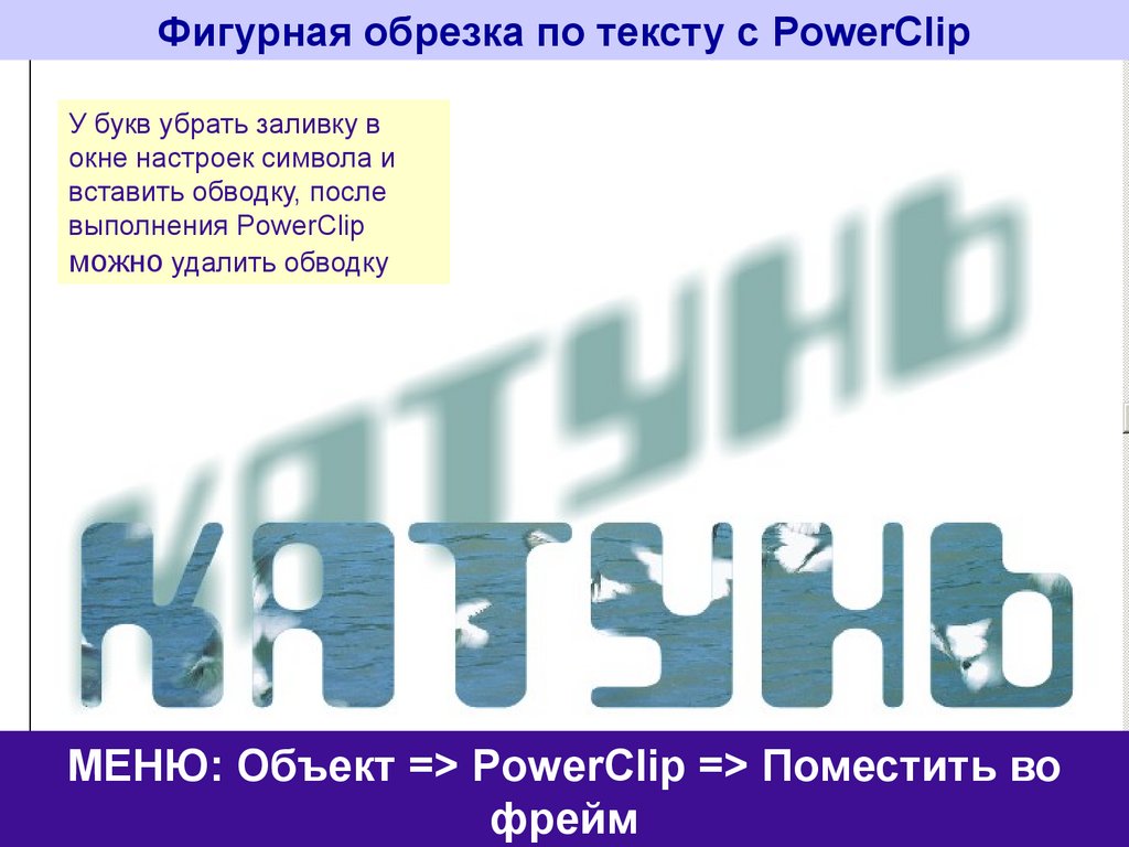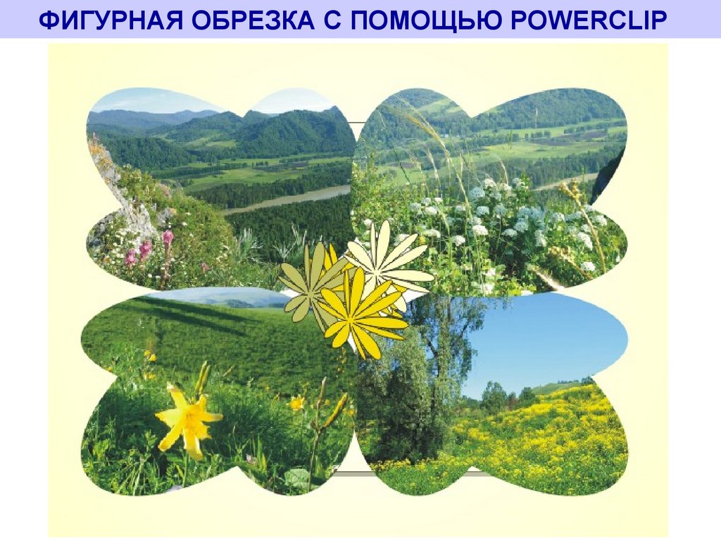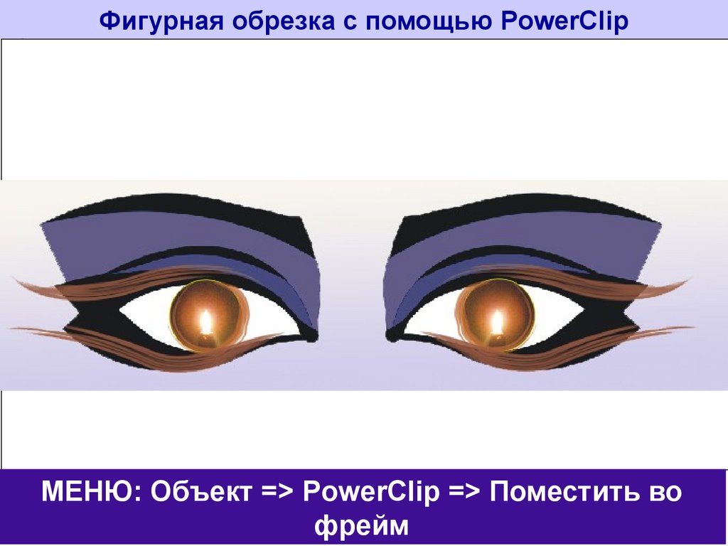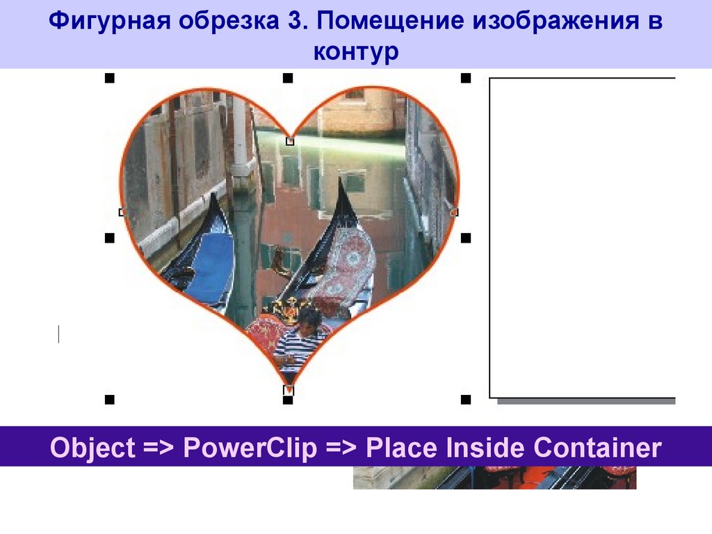 Фигурная обрезка с помощью PowerClipМЕНЮ: Объект => PowerClip => Поместить во