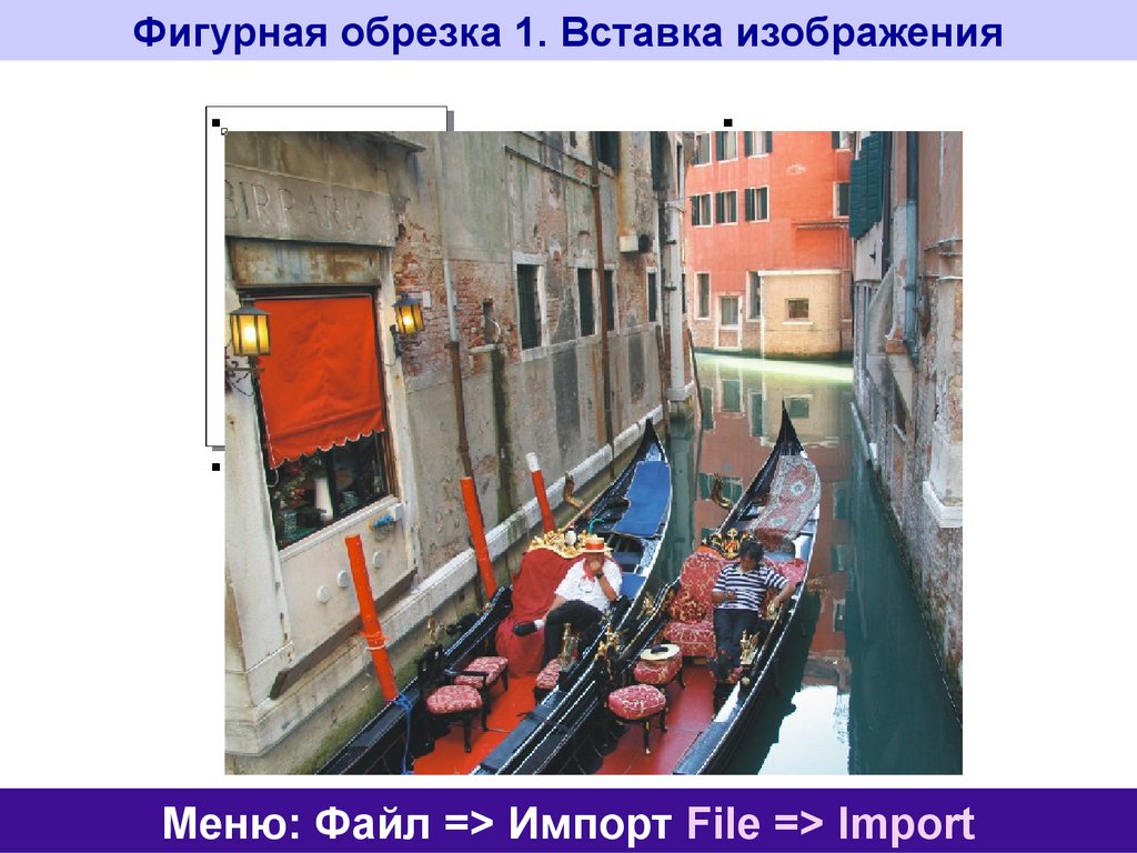 Фигурная обрезка 1. Вставка изображенияМеню: Файл => Импорт File => Import