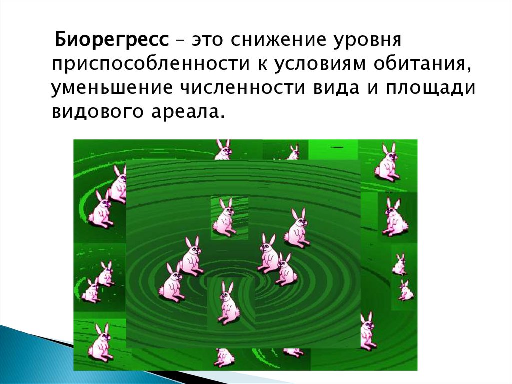 Биорегресс – это снижение уровняприспособленности к условиям обитания,