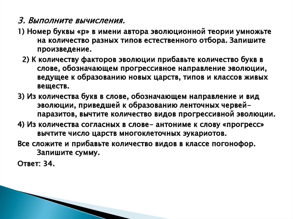3. Выполните вычисления.1) Номер буквы «р» в имени автора эволюционной теории умножьте