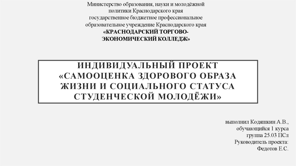 1. индивидуальный проект «Самооценка здорового образа жизни и социального статуса студенческой молодёжи»