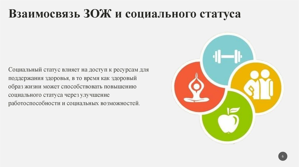 Взаимосвязь ЗОЖ и социального статусаСоциальный статус влияет на доступ к ресурсам для