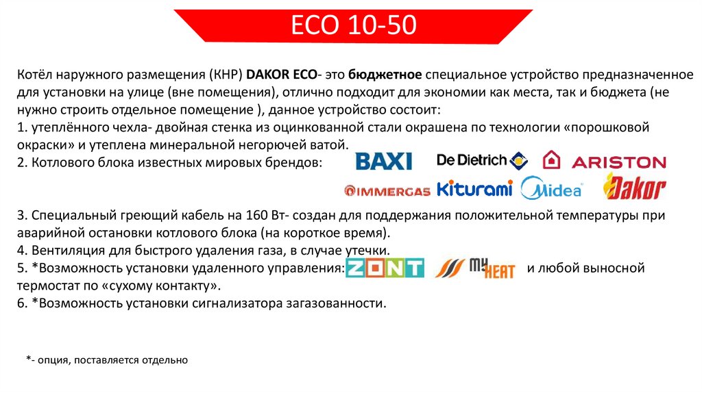 ECO 10-50Котёл наружного размещения (КНР) DAKOR ECO- это бюджетное специальное устройство предназначенное