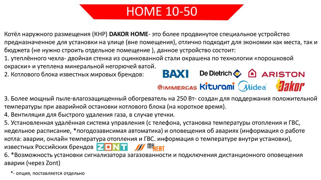 HOME 10-50Котёл наружного размещения (КНР) DAKOR HOME- это более продвинутое специальное устройство