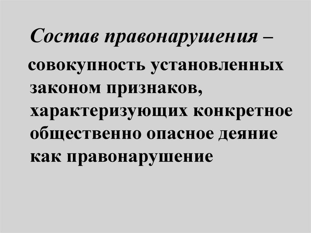 Состав правонарушения –совокупность установленных
