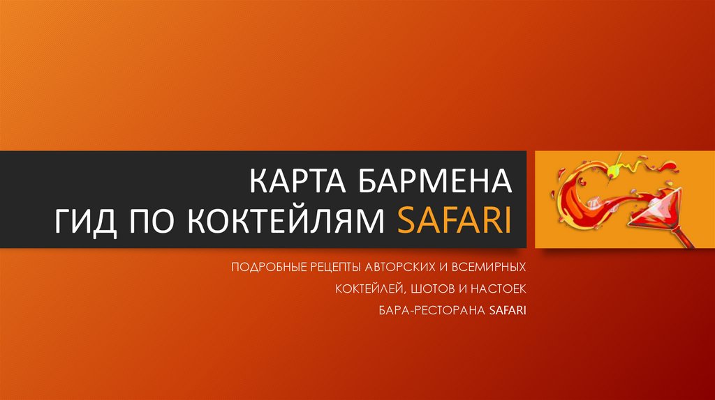 1. КАРТА БАРМЕНА ГИД ПО КОКТЕЙЛЯМ SAFARI