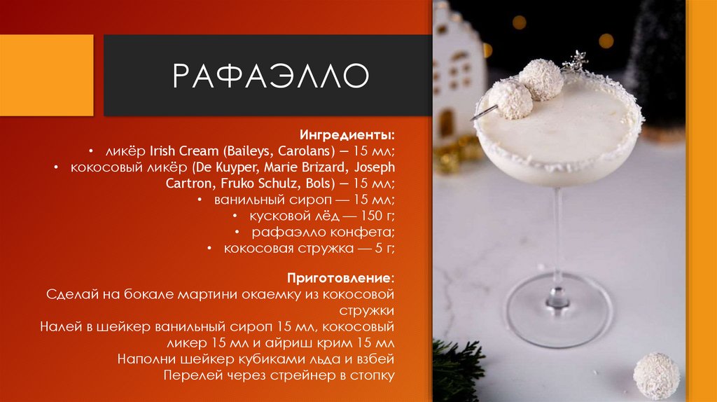 • кокосовый ликёр (De Kuyper, Marie Brizard, Joseph