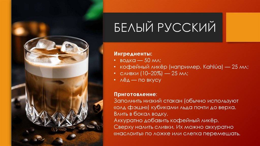 КОКТЕЙЛИ:Белый русский