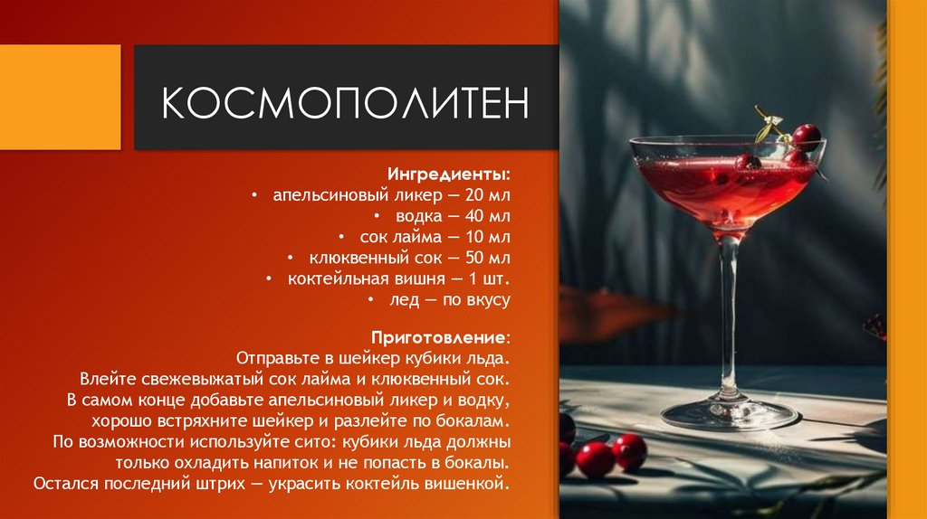 КОСМОПОЛИТЕНИнгредиенты: