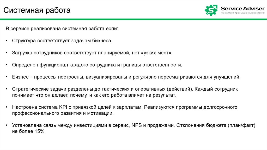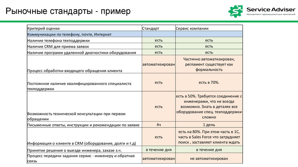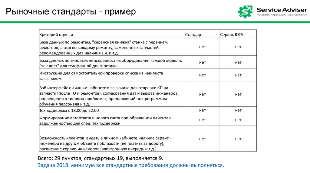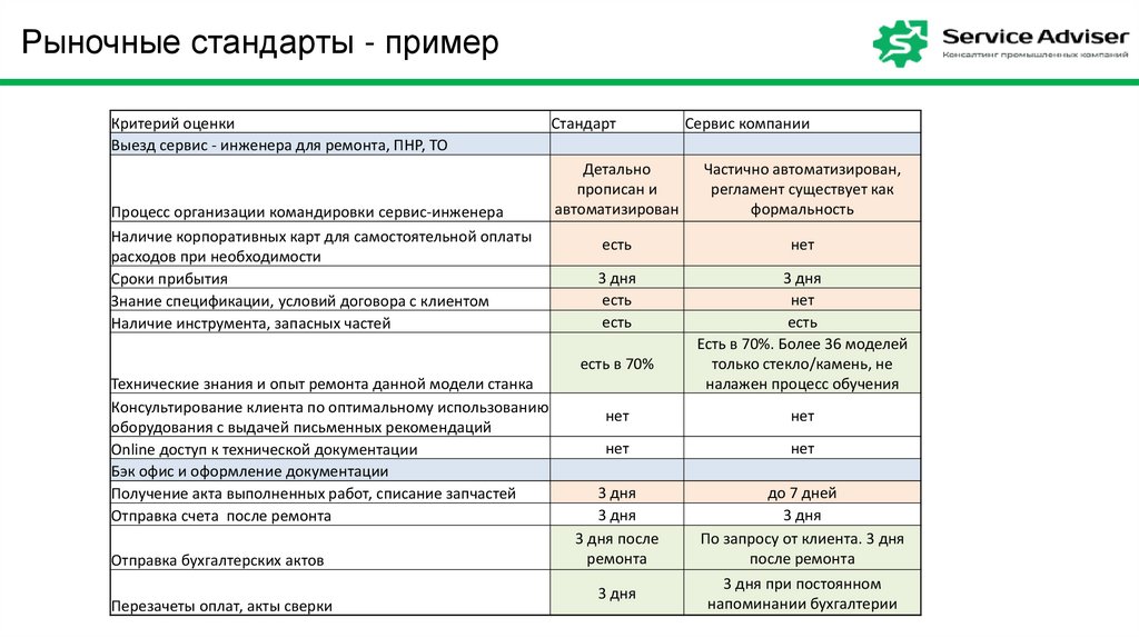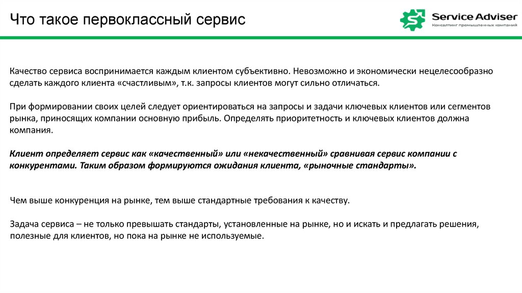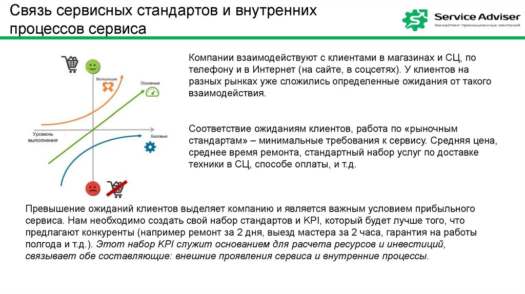 сервиса. Нам необходимо создать свой набор стандартов и KPI, который будет лучше того, что