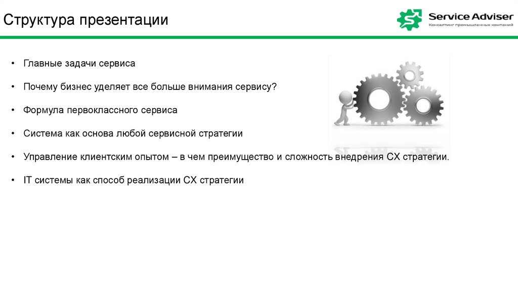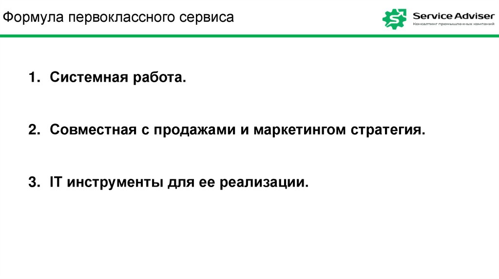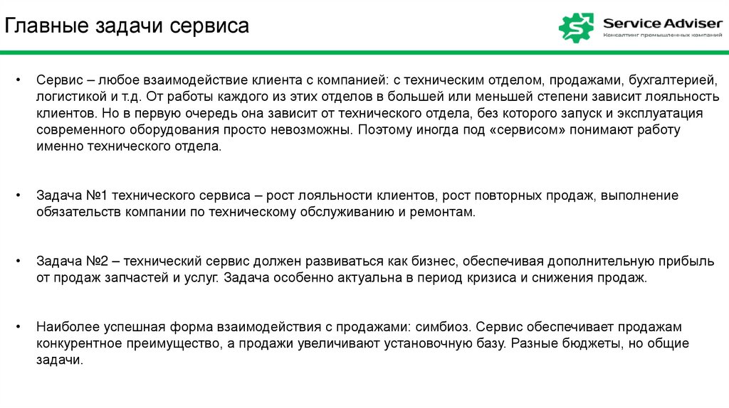 Главные задачи сервисаСервис – любое взаимодействие клиента с компанией: с техническим отделом, продажами, бухгалтерией,