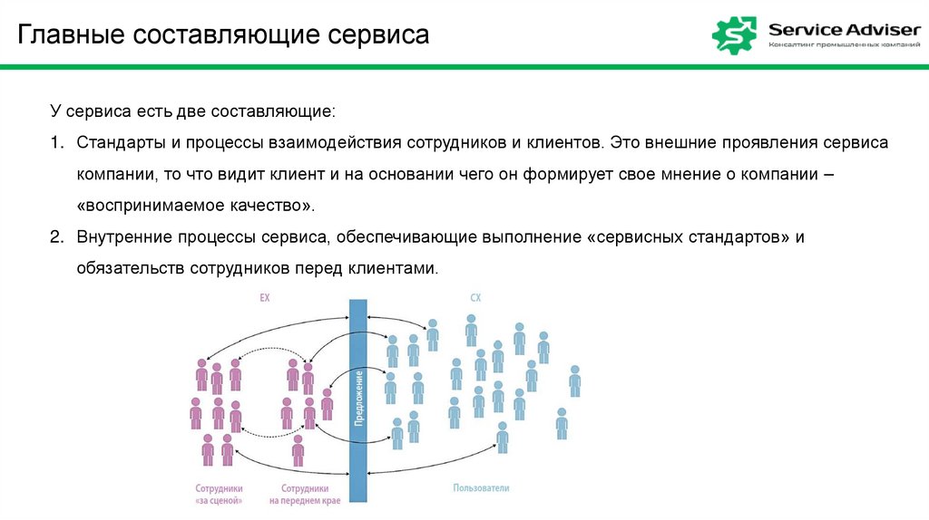 связывает обе составляющие: внешние проявления сервиса и внутренние процессы.