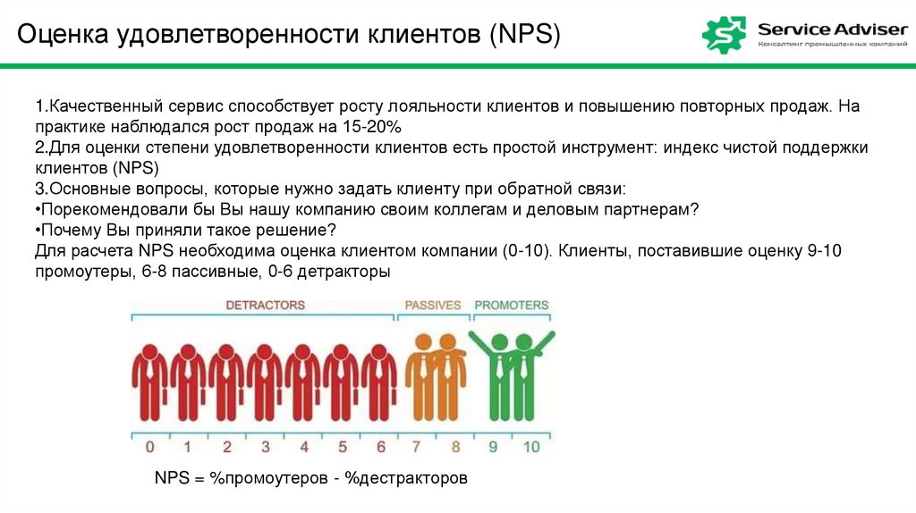 Оценка удовлетворенности клиентов (NPS)1.Качественный сервис способствует росту лояльности клиентов и повышению повторных продаж. На