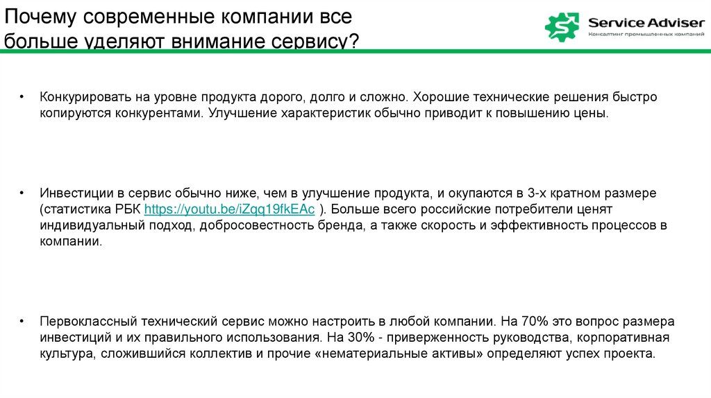 Инвестиции в сервис обычно ниже, чем в улучшение продукта, и окупаются в 3-х кратном размере