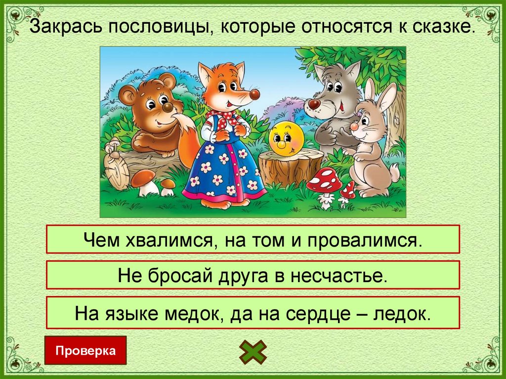 Закрась пословицы, которые относятся к сказке.Чем хвалимся, на том и провалимся.