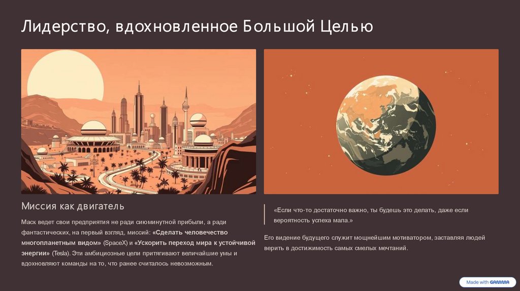 Его видение будущего служит мощнейшим мотиватором, заставляя людей