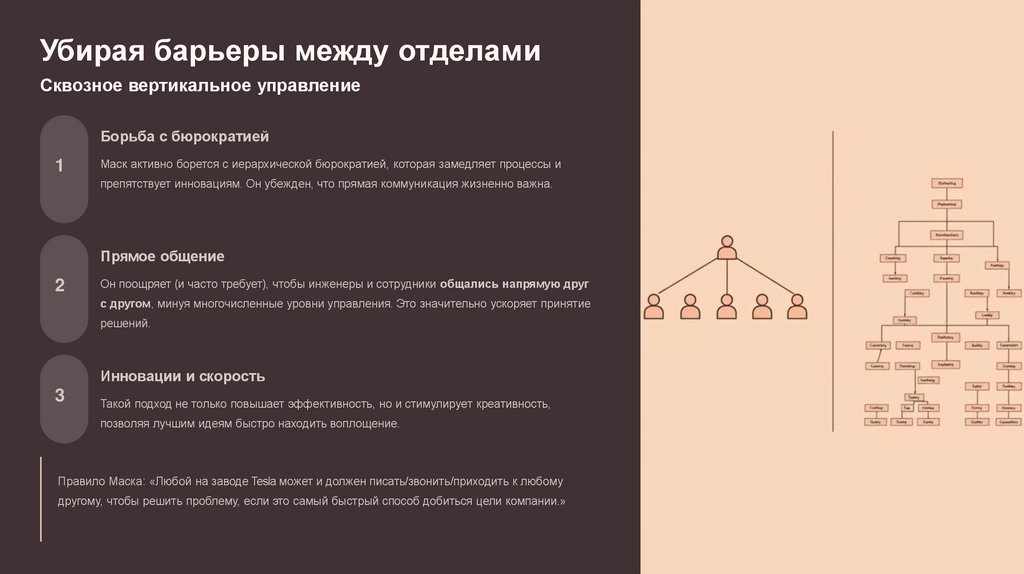 Маск активно борется с иерархической бюрократией, которая замедляет процессы и