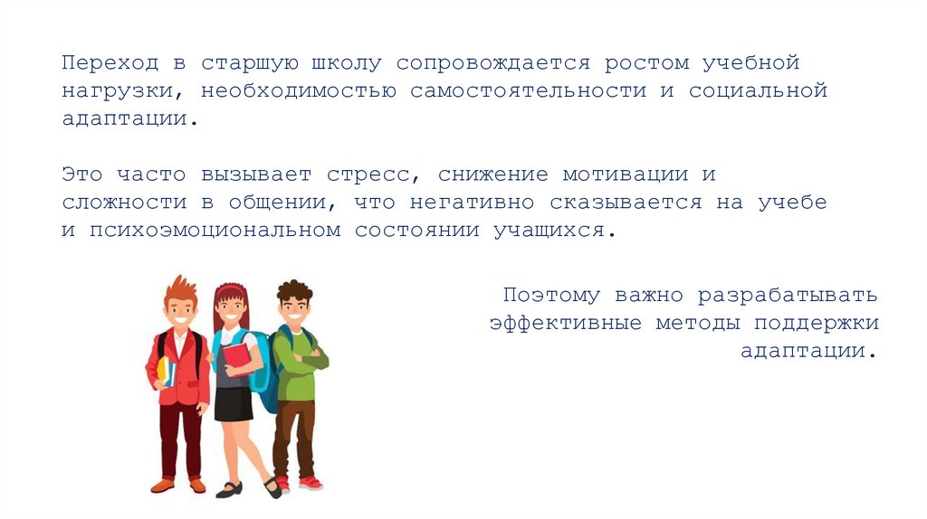 Переход в старшую школу сопровождается ростом учебнойнагрузки, необходимостью самостоятельности и социальной