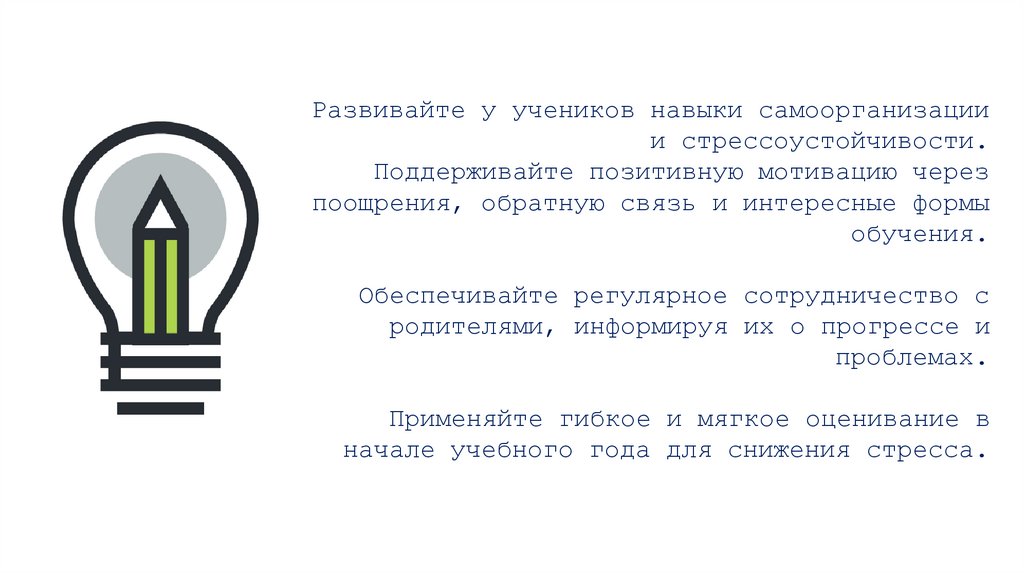Развивайте у учеников навыки самоорганизациии стрессоустойчивости.