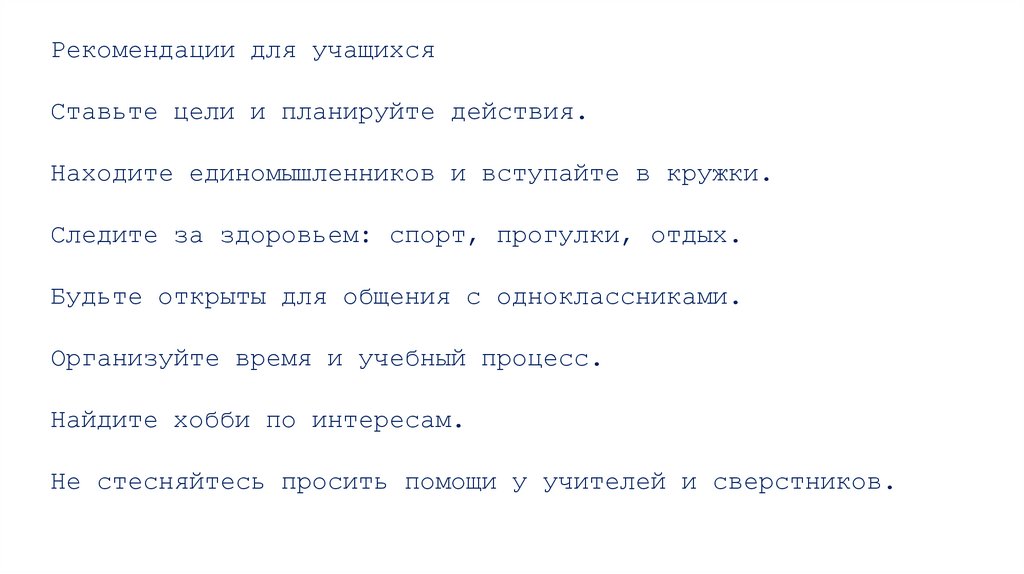 Рекомендации для учащихсяСтавьте цели и планируйте действия.