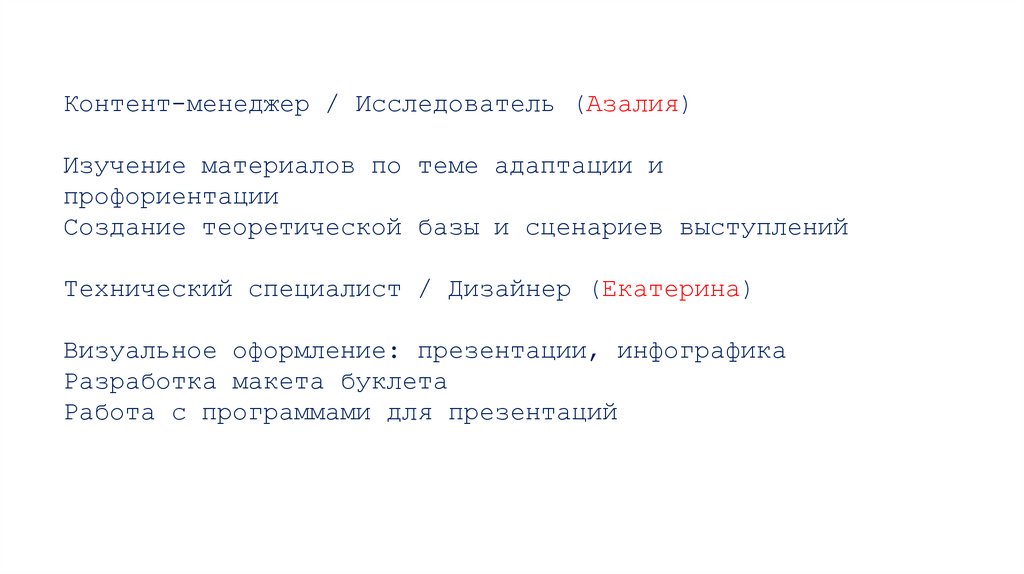 Контент-менеджер / Исследователь (Азалия)Изучение материалов по теме адаптации и