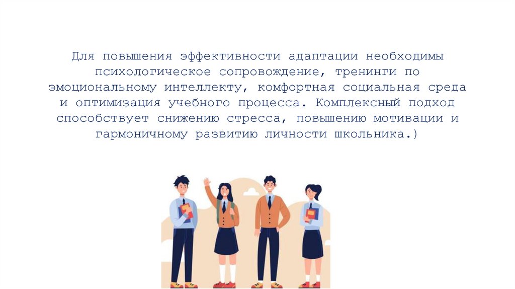 Для повышения эффективности адаптации необходимыпсихологическое сопровождение, тренинги по