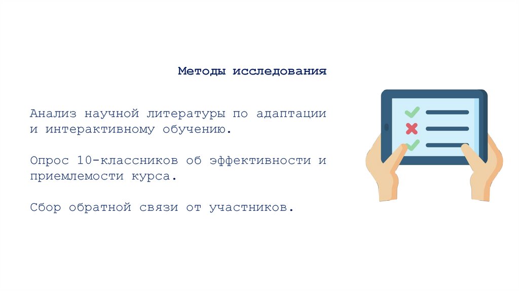 ЦельСоздать условия и рекомендации для успешной адаптации