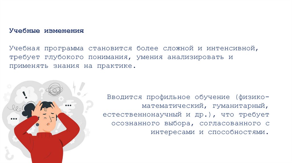 Учебные измененияУчебная программа становится более сложной и интенсивной,
