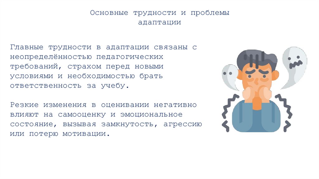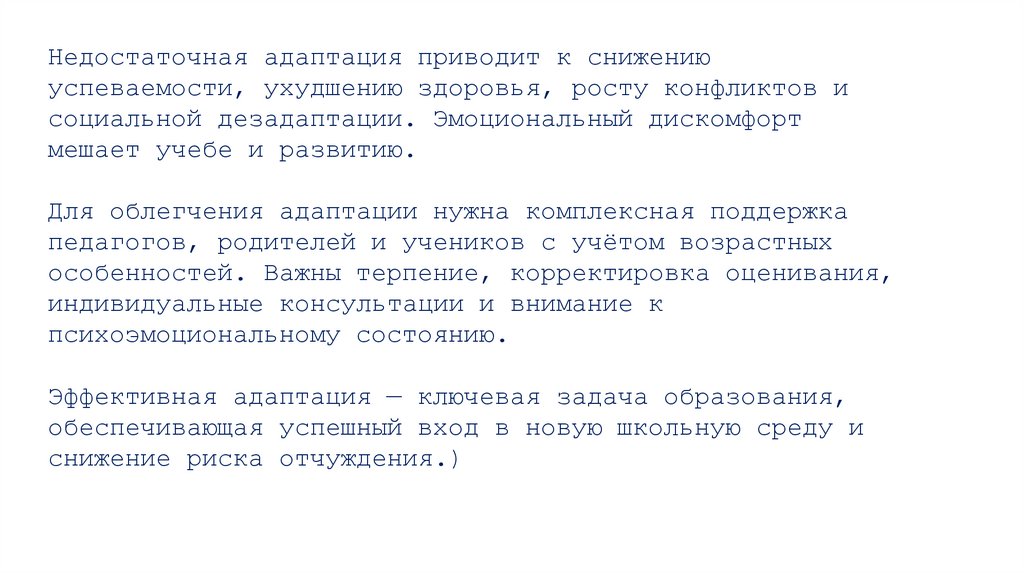 Недостаточная адаптация приводит к снижениюуспеваемости, ухудшению здоровья, росту конфликтов и