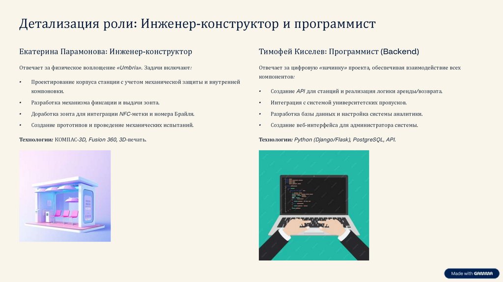 Детализация роли: Инженер-конструктор и программистЕкатерина Парамонова: Инженер-конструктор