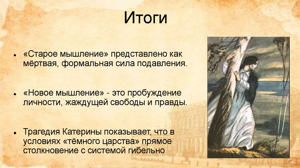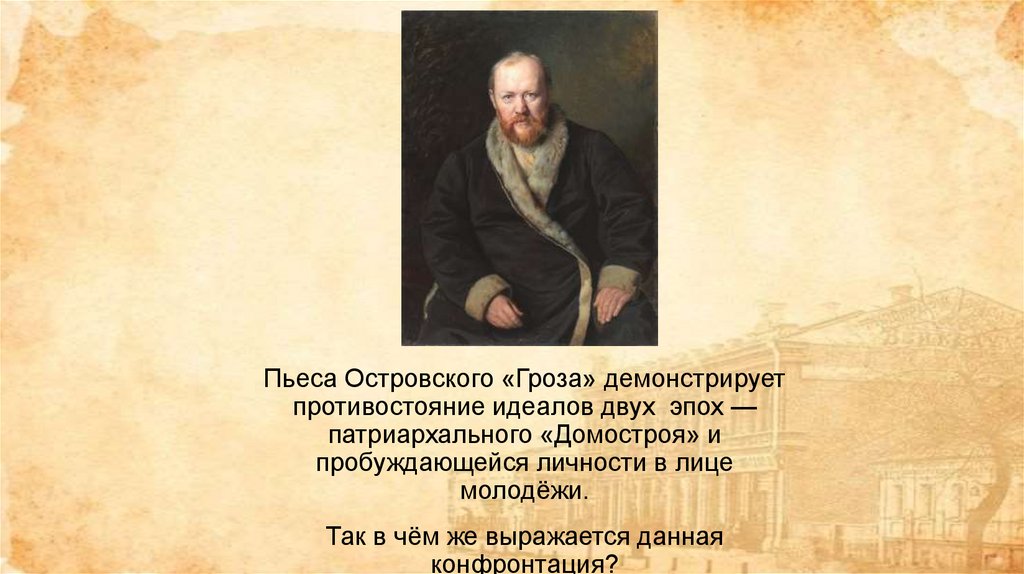 Пьеса Островского «Гроза» демонстрируетпротивостояние идеалов двух эпох —