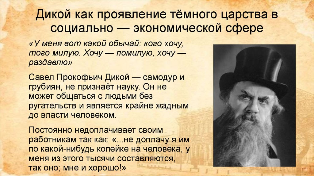 Дикой как проявление тёмного царства всоциально — экономической сфере