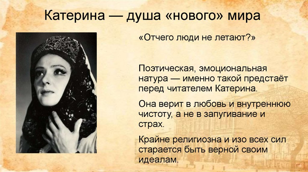 Катерина — душа «нового» мира«Отчего люди не летают?»