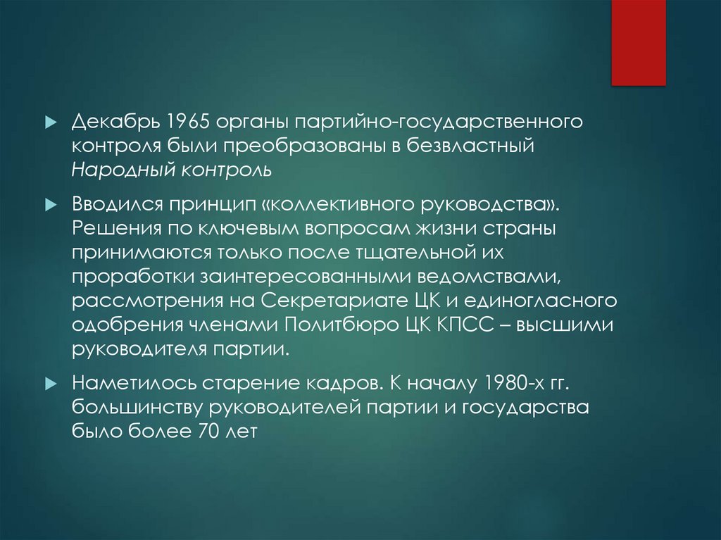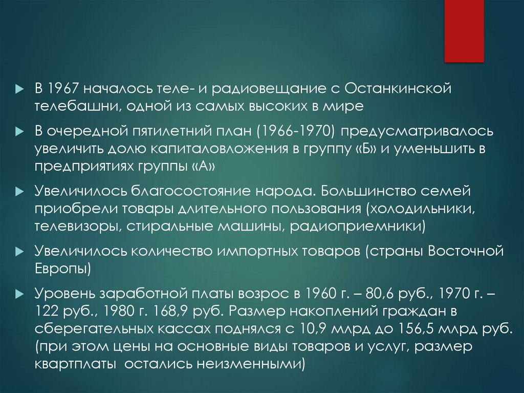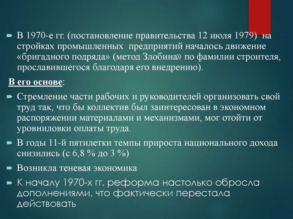 Период 1964-1982гг. – «эпоха застоя».Резкое замедление темпов экономического и