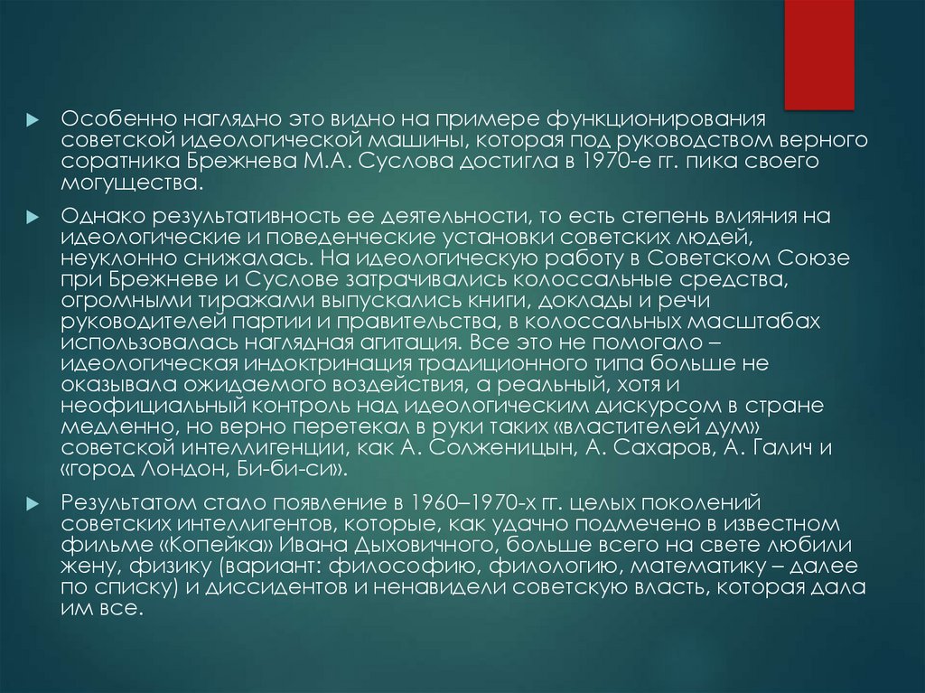 Особенности Идеологии, национальной и социальноэкономической политики. Движение диссидентов.